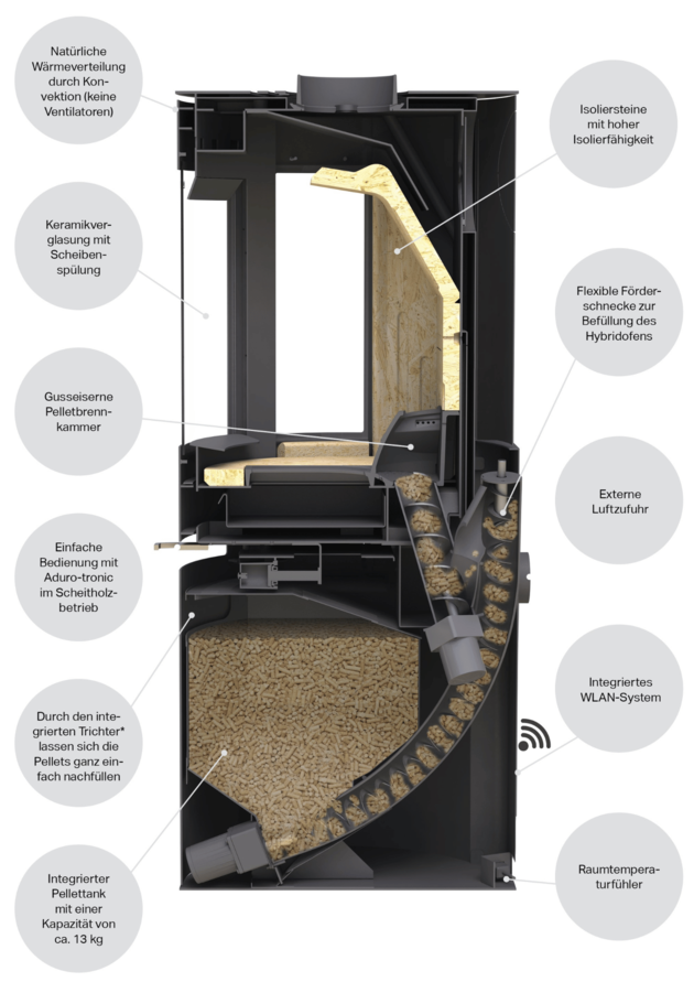 Hybridöfen kombinieren die Vorteile von traditionellen Holzöfen mit modernen Heiztechnologien. Sie bieten Flexibilität in der Brennstoffwahl und sorgen für eine effiziente Wärmeübertragung. Unsere Hybridöfen sind ideal für umweltbewusste Verbraucher, die innovative Heizlösungen suchen.